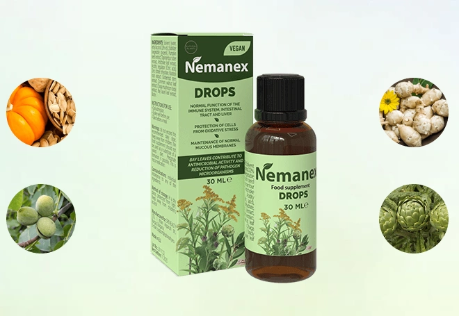 Nemanex è un rimedio erboristico sviluppato per avere un effetto complesso sui parassiti e supportare l'organismo nel processo della loro eliminazione. A differenza dei mezzi antiparassitari di sintesi, Nemanex contiene componenti naturali che non solo combattono i parassiti, ma rafforzano anche le difese dell'organismo, supportano l'apparato digerente e il fegato.